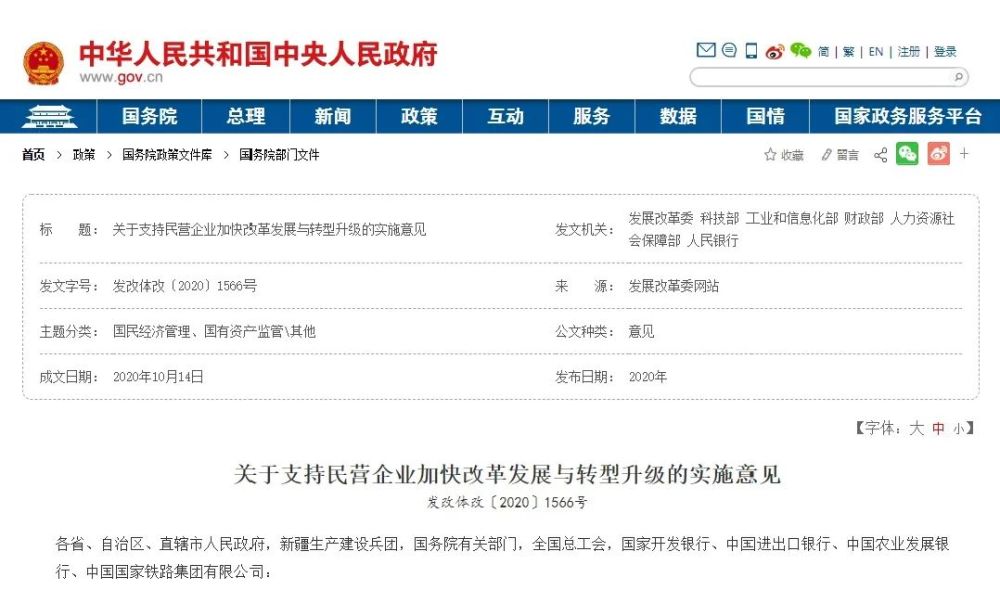 近日,国家发改委、科技部、工信部、财政部、人社部、中国人民银行等六部门印发了《关于支持民营企业加快改革发展与转型升级的实施意见》(以下简称《实施意见》),从9个方面提出38条措施,激发民营企业创新创造活力与推动民营企业转型升级。近日,国家发改委、科技部、工信部、财政部、人社部、中国人民银行等六部门印发了《关于支持民营企业加快改革发展与转型升级的实施意见》(以下简称《实施意见》),从9个方面提出38条措施,激发民营企业创新创造活力与推动民营企业转型升级。