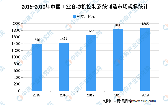 中商情报网讯:工业自动化控制系统作为提升高端装备竞争力的重要手段,是装备制造不可或缺的组成部分。伴随着我国高端装备制造业的快速发展以及工业自动化控制产品应用领域的不断拓展,工业自动化控制行业市场规模呈现增长态势。数据显示,2019年我国自动化及工业控制市场规模达到1865亿元。